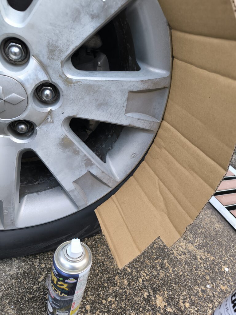 結構な量をスプレーするので段ボールで適当にマスキングです。↓